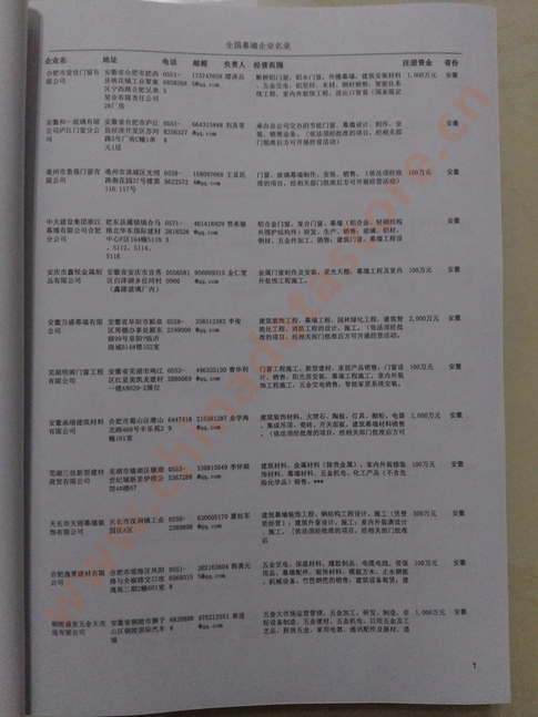 | 全國幕墻企業(yè)黃頁 | 全國所有幕墻企業(yè)黃頁 | 80% - 90% | 1000元 | 附贈上下冊 幕墻企業(yè)紙質(zhì)印刷品 |