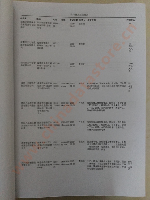| 四川食品企業(yè)黃頁 | 所有四川食品企業(yè)黃頁 | 80% - 90% | 600元 | 附贈一冊四川食品紙質(zhì)印刷品 |