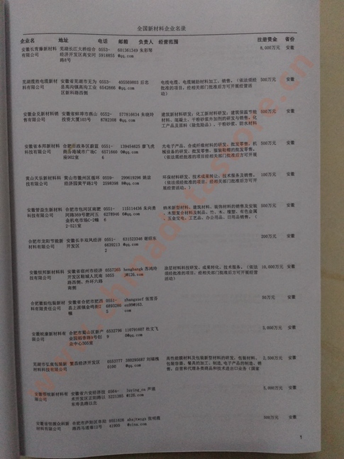 | 全國新材料企業(yè)黃頁 | 全國所有新材料企業(yè)黃頁 | 80% - 90% | 3000元 | 附贈上下冊新材料紙質(zhì)印刷品 |