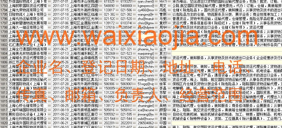 安徽貨運(yùn)代理公司名單數(shù)據(jù)為Excel格式,信息可任意修改、復(fù)制、打印、導(dǎo)出及導(dǎo)入到傳真、郵件群發(fā)等軟件中,無任何限制。