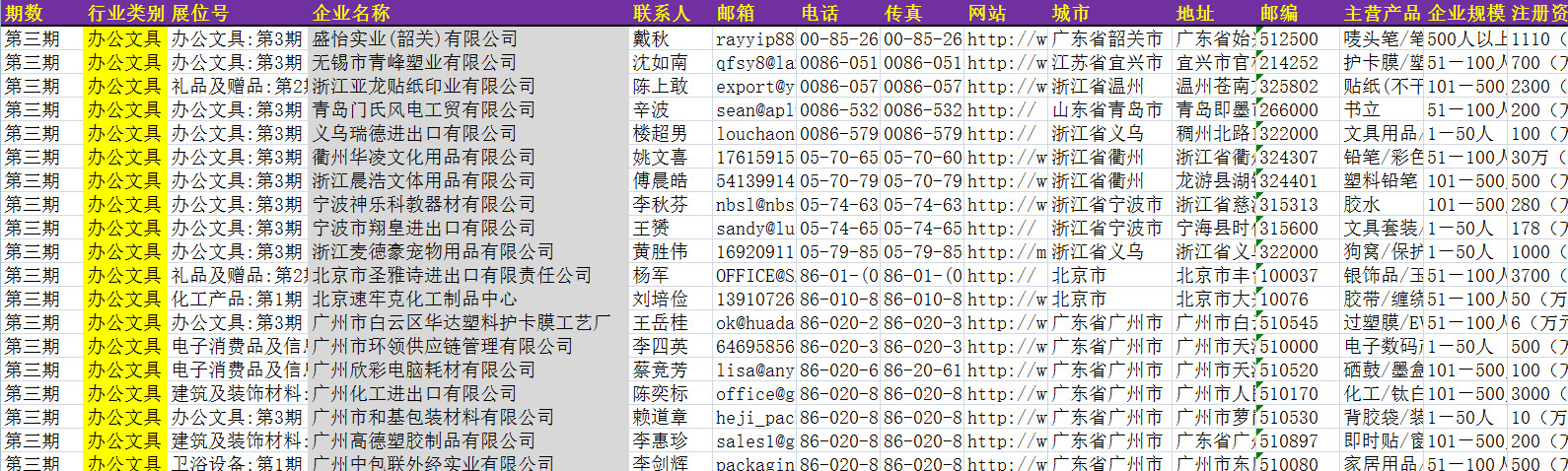121屆廣交會參展商黃頁數據為Excel格式,信息可任意修改、復制、打印、導出及導入到傳真、郵件群發(fā)等軟件中,無任何限制。