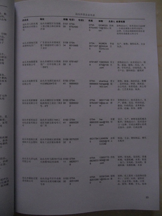 汕頭外貿(mào)企業(yè)黃頁(yè)包括純貿(mào)易公司、工貿(mào)企業(yè)、出口加工工廠。