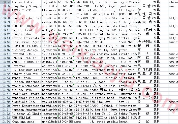 家具采購(gòu)商名單數(shù)據(jù)為Excel格式,信息可任意修改、復(fù)制、打印、導(dǎo)出及導(dǎo)入到傳真、郵件群發(fā)等軟件中,無任何限制。