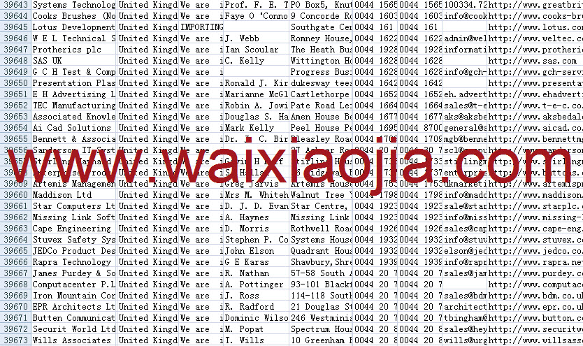 英國采購商名單數(shù)據(jù)為Excel格式,信息可任意修改、復(fù)制、打印、導(dǎo)出及導(dǎo)入到傳真、郵件群發(fā)等軟件中,無任何限制。